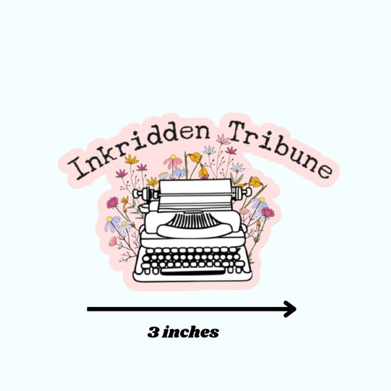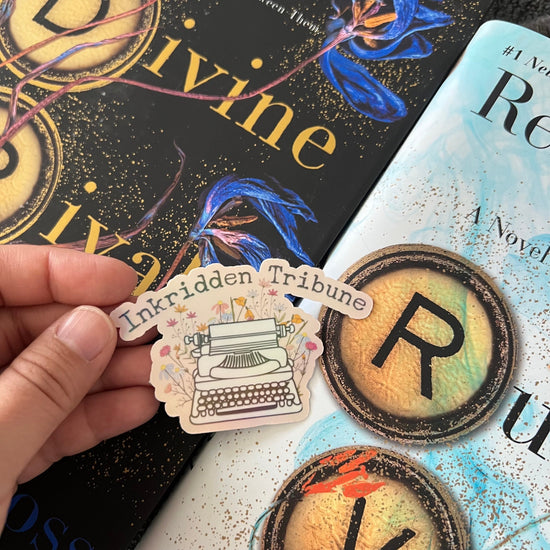 Show your love for Rebecca Ross's captivating novel, Divine Rivals, with this unique sticker featuring a vintage typewriter, delicate wildflowers, and the iconic "Inkridden Tribune" lettering.