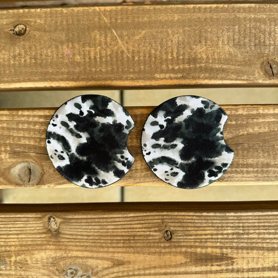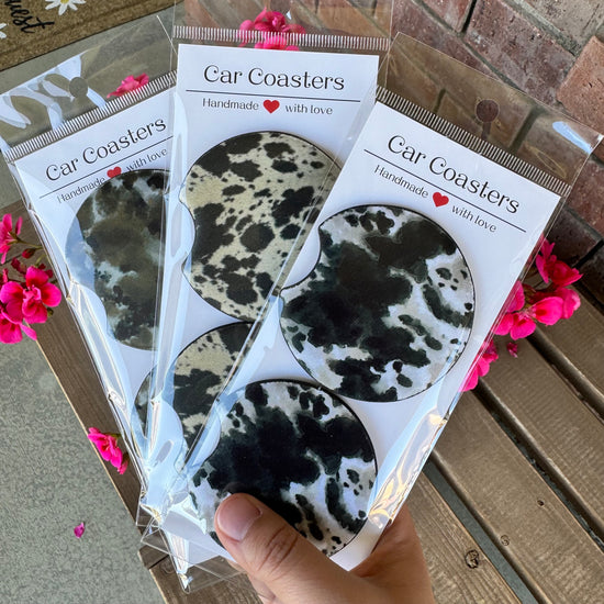 So make a splash in your vehicle today with these one-of-a-kind, black and white cow-inspired coasters — perfect for any car, SUV, or truck drink holder. Girls and boys, cowgirls, and cowboys alike will enjoy this stylish and practical addition to their ride. Elevate your aesthetics and travel in style with our unique car coasters, giving your car some Webster vibes.